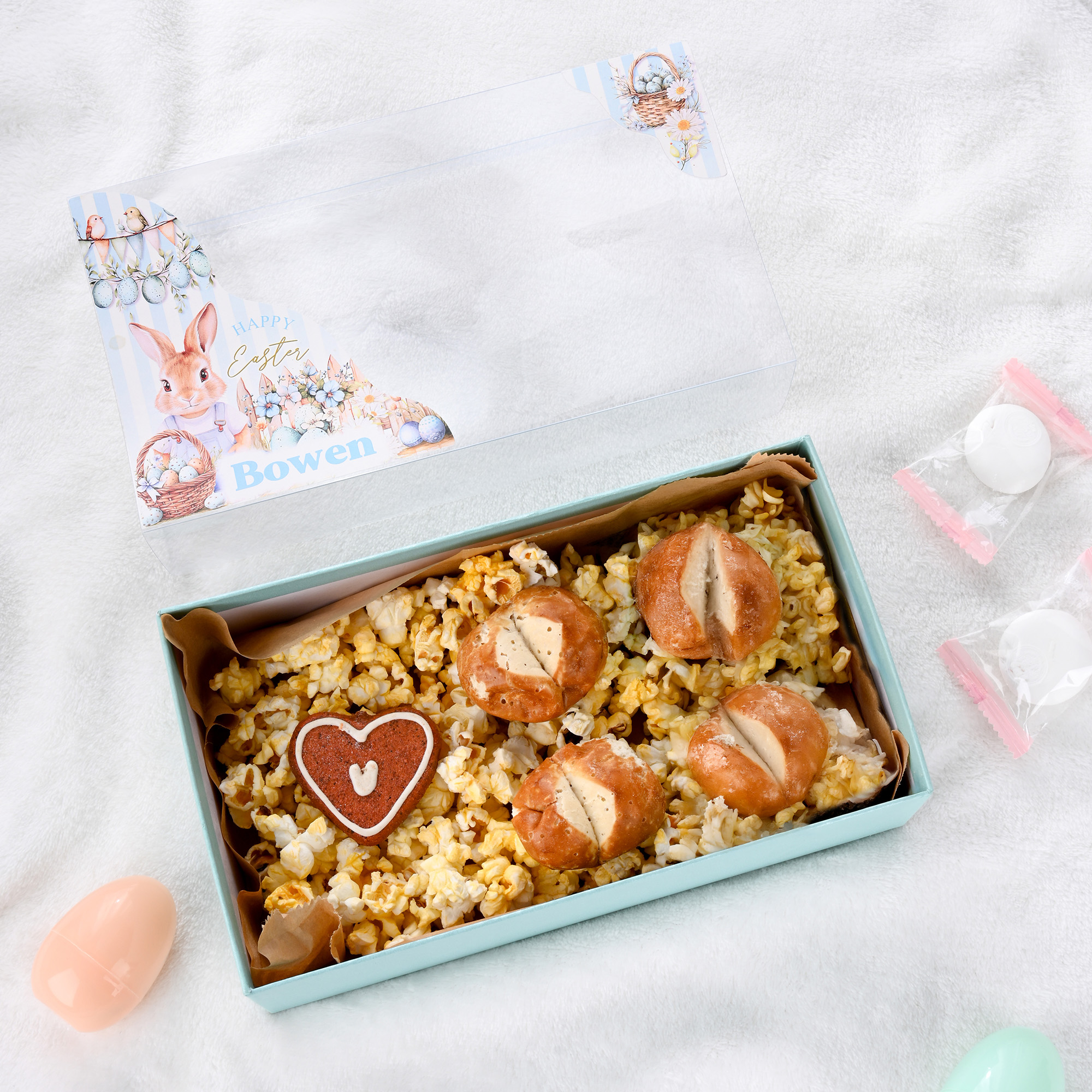 Custom Design - This Easter box showcases a charming Peter Rabbit theme with refined classic patterns on the outer surface and a clear lid that highlights the neatly displayed contents inside. It also allows for personalization, letting you add a name or meaningful message to create a one-of-a-kind holiday keepsake.